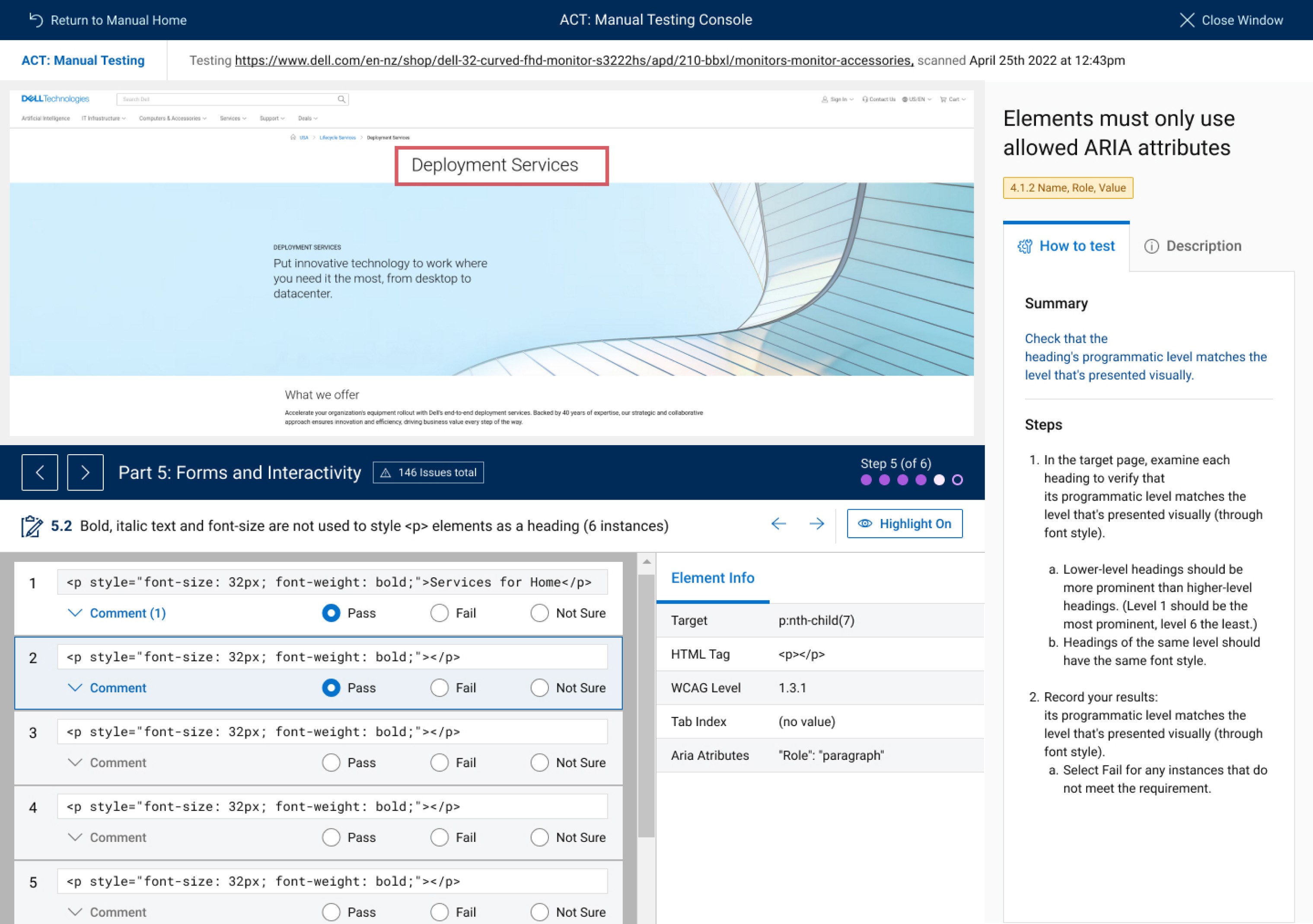 We validated early versions of the manual testing flow through usability testing with accessibility practitioners and internal stakeholders. Feedback from these sessions was synthesized using affinity mapping and used to iteratively refine the structure, language, and navigation of the flow.