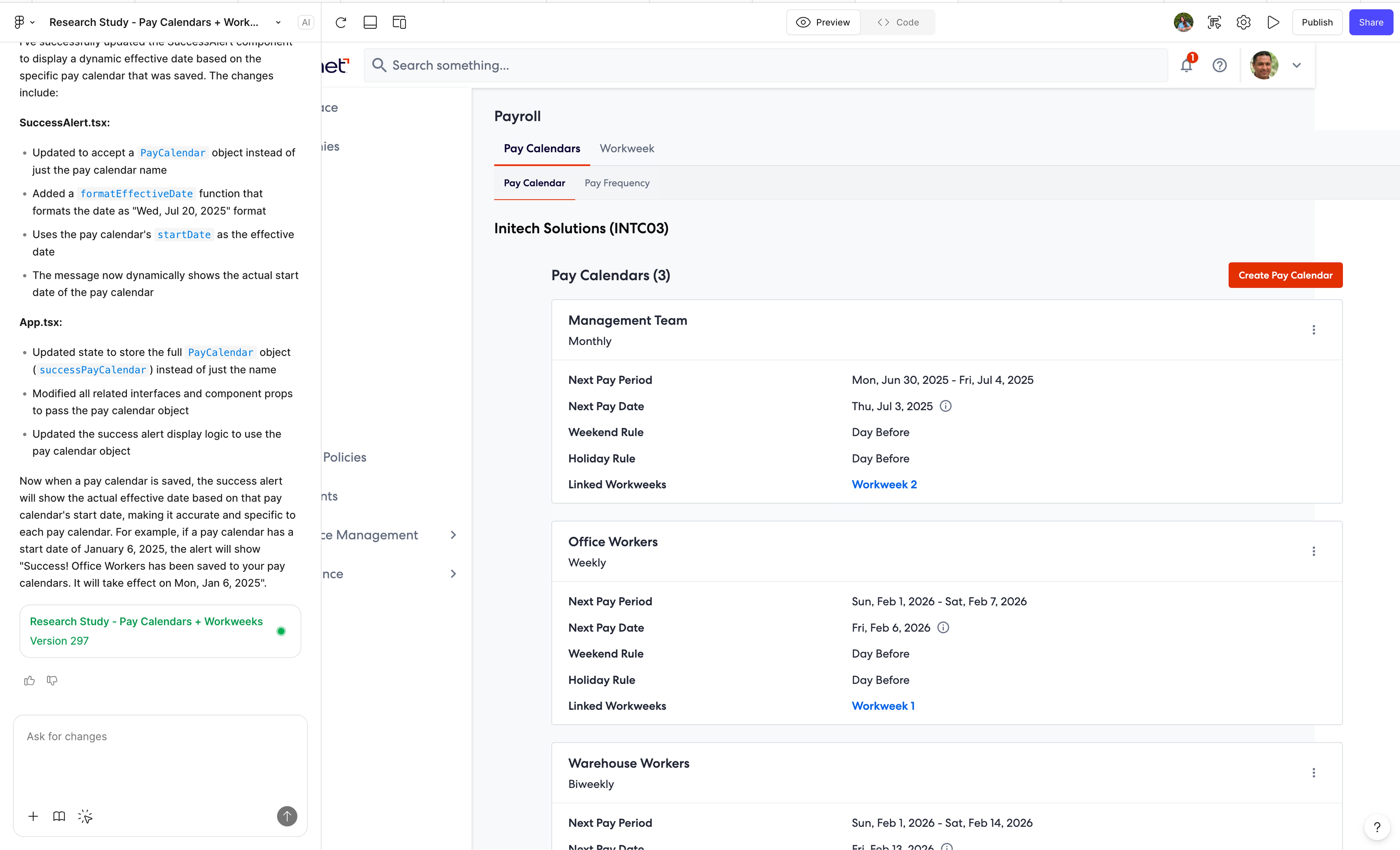 To support usability testing, we built a high-fidelity prototype using Figma Make that allowed users to interact with realistic payroll logic rather than static screens. The prototype went through 200+ iterations, enabling us to simulate calculated dates,